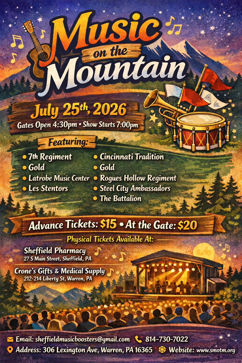 Sheffield’s Music on the Mountain Satruday july 25th, 2026 at 7pm 16Mar 2026Add a comment Like Loading... Related